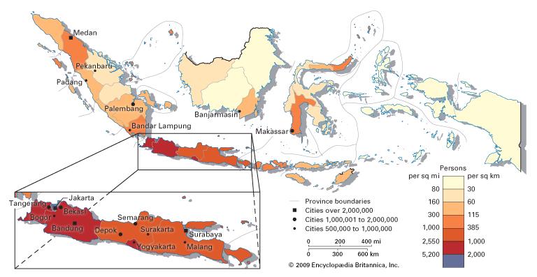 This map portrays the population density of Indonesia. As the fourth most populous country in the world, the dispersion of those millions of people is very important. Especially when considering media use and media access.