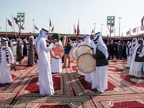 Taken at the 2013 Qatar National Celebration, this photograph shows the extravagance and beauty of the national celebrations each year. Kristian Ulrichsen thinks these celebrations were manufactured by the Qatari government to help mold a national identity, claiming state-branding through events like this one “serves a domestic purpose as it fosters a sense of national identity, loyalty, and social cohesion”1. Through events like the National Celebration each year, Qatar makes its culture appeal to and persuade other nations, contributing to its soft power . The white men in the background show the intermingling of foreigners and Qatari people (though the men in traditional Muslim dress seem to be the ones actually taking part, while the white men watch). However, this past year (2016), the Emir cancelled all National Day celebrations in solidarity with the suffering people of Syria.2 I4