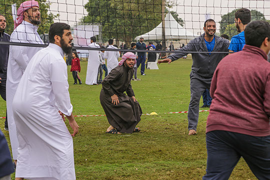 Qatar recently celebrated its 6th National Sports Day. People who live in Qatar are known to be sports fans. The men in this photo come from a range of backgrounds and are engaging in a game of volleyball, brought together by the unifying quality of sports in Qatar. I5